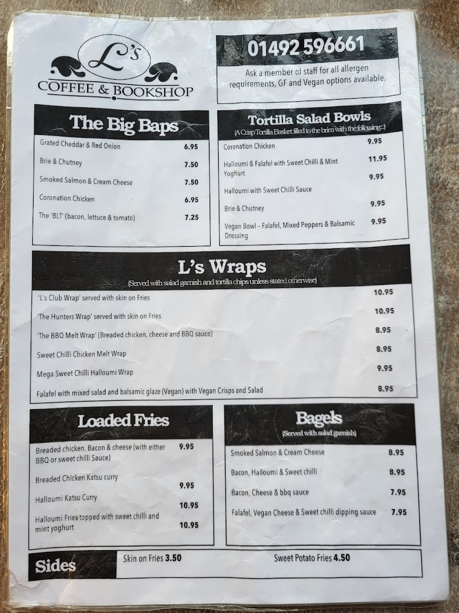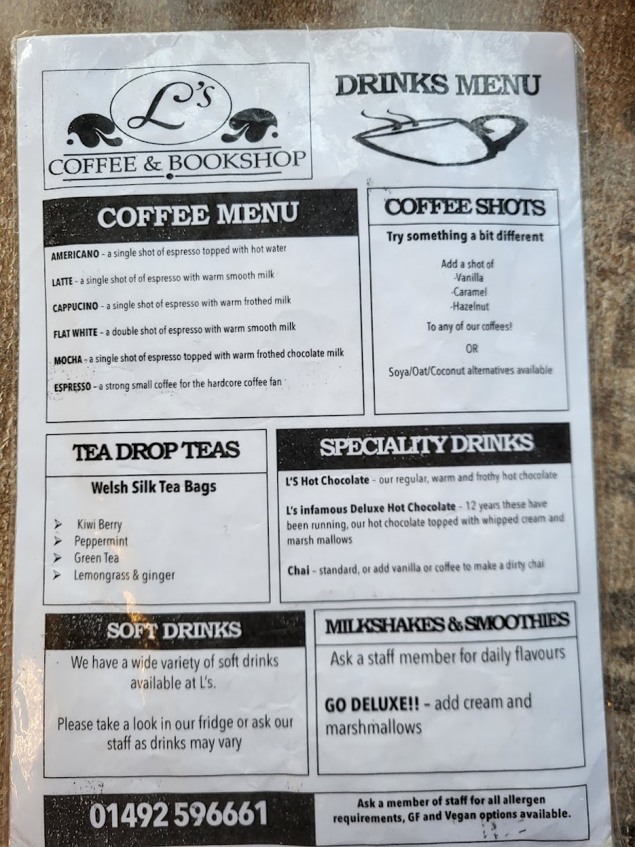 L's Coffee & Bookshop Menu